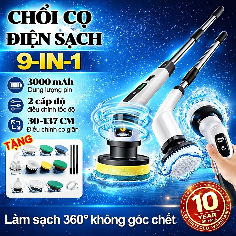 Chổi Điện MX 9in1 Cao Cấp – Rửa Xe Ô Tô, Cọ Nhà Vệ Sinh, Lau Kính Siêu Sạch, Siêu Bền