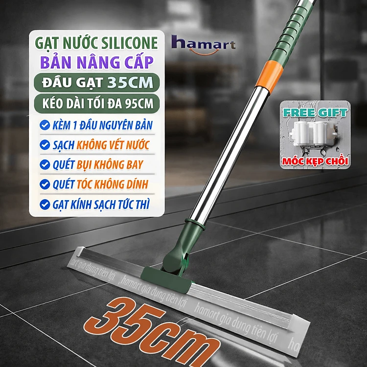 Chổi Gạt Nước Sàn Nhà Silicone Lau Kính Cán Dài Đa Năng Hamart Xoay 180º Quét Tóc Gầm Giường Khe Ghế