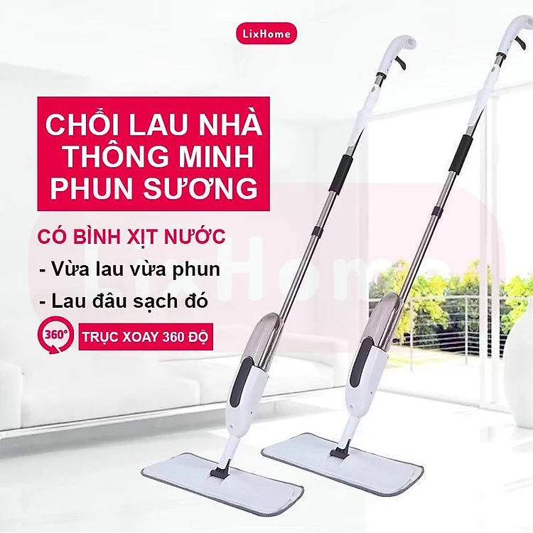 Chổi lau nhà thông minh phun sương xoay 360 độ, bộ cây lau nhà, lau sàn gỗ tiện dụng bền đẹp không cần nhúng nước