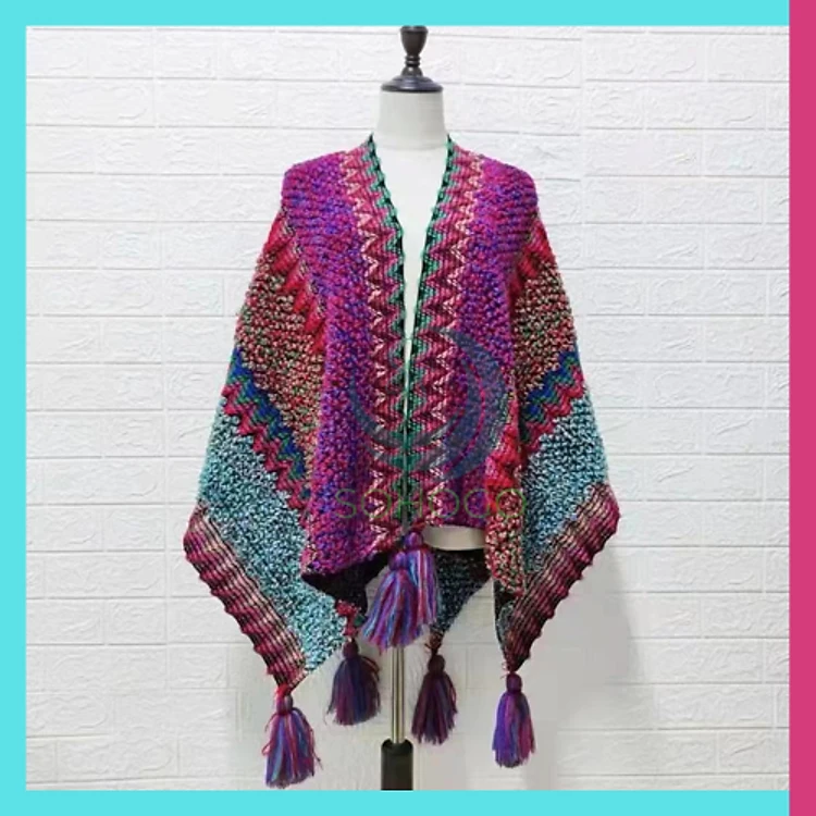 [CHỌN MÀU]-Áo choàng dệt kim tua rua 135x106cm, chống nắng thời trang du lịch-Khăn choàng dệt kim phong cách Boho