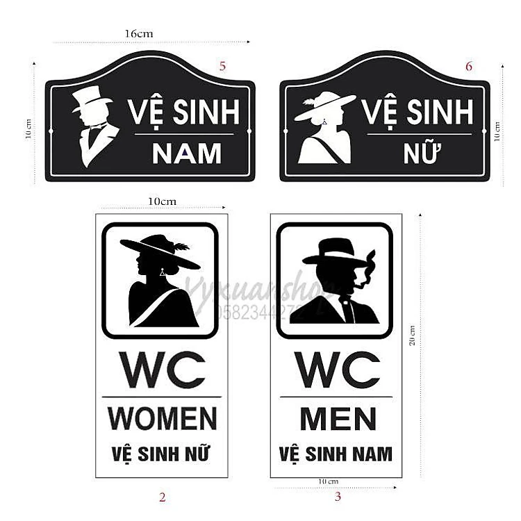 Biển báo fomec 3mm dán decal chỉ dẫn Toilet, nhà vệ sinh, WC nam, WC nữ