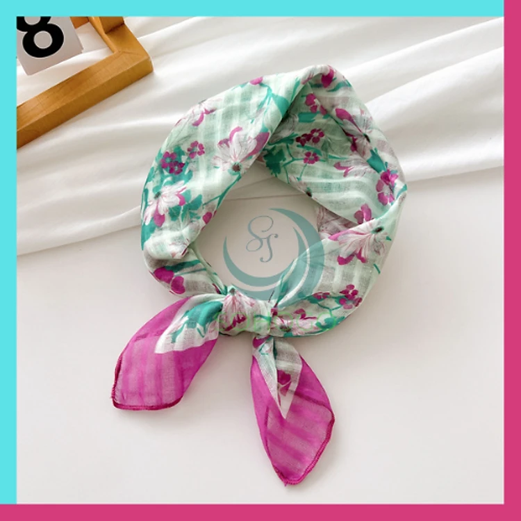 [CHỌN MẪU]- Khăn choàng cổ vuông 55x55cm chất liệu cotton lanh mềm mại in họa tiết hoa phối màu- Khăn vuông bandanas cotton