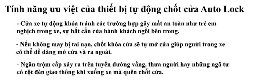 - Tự động chốt cửa khi xe chạy từ 15 km/h đến 20 km/h.