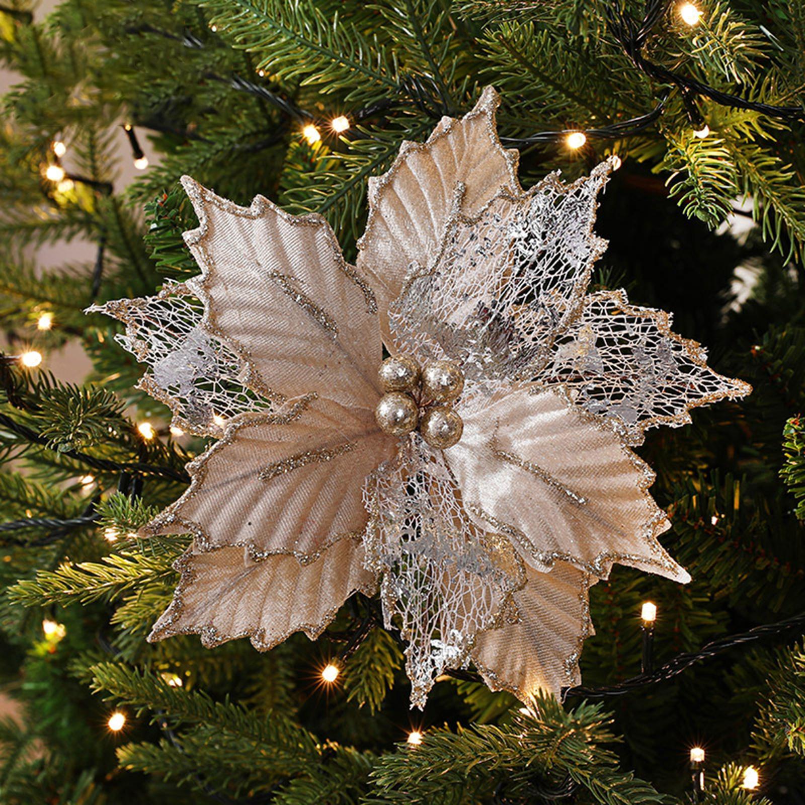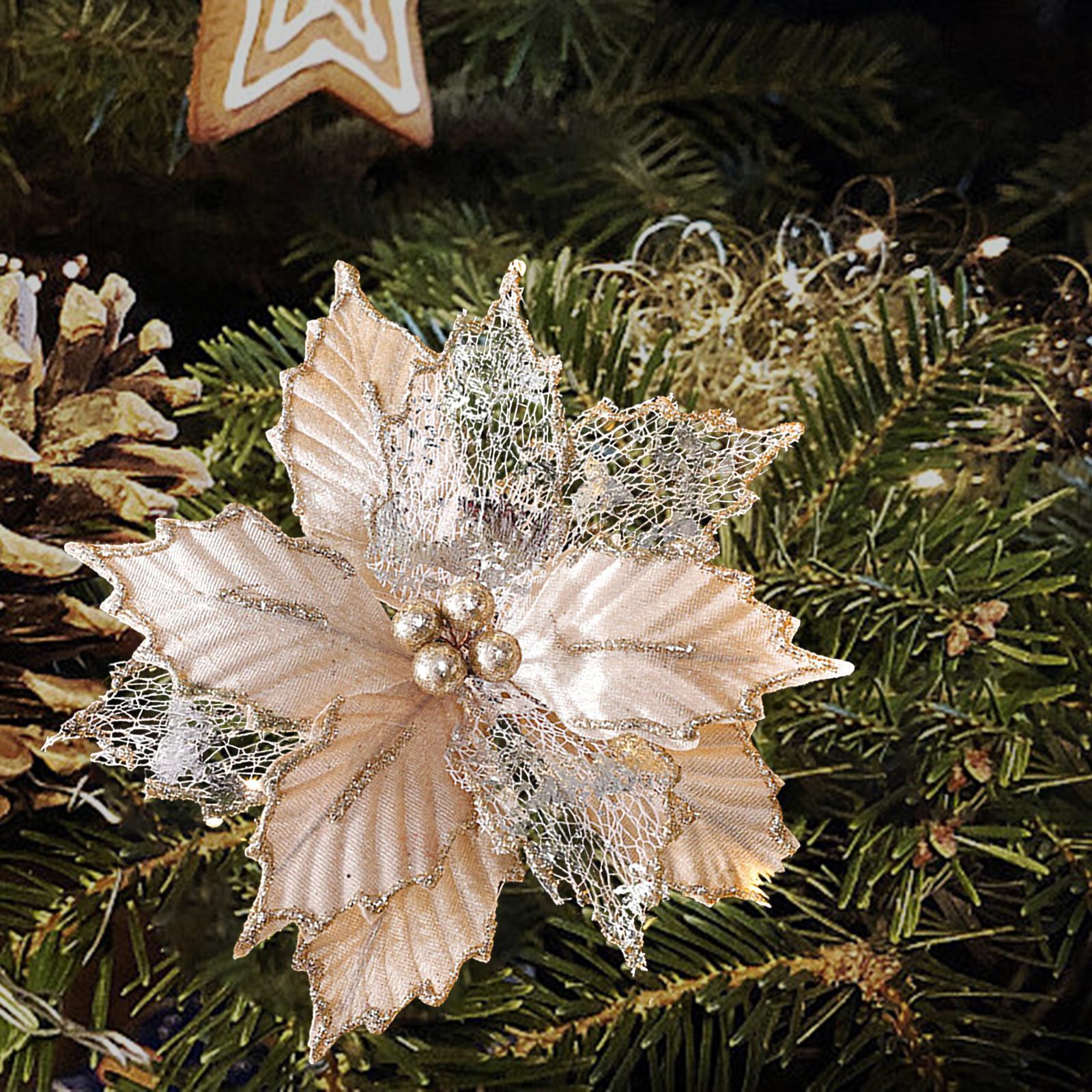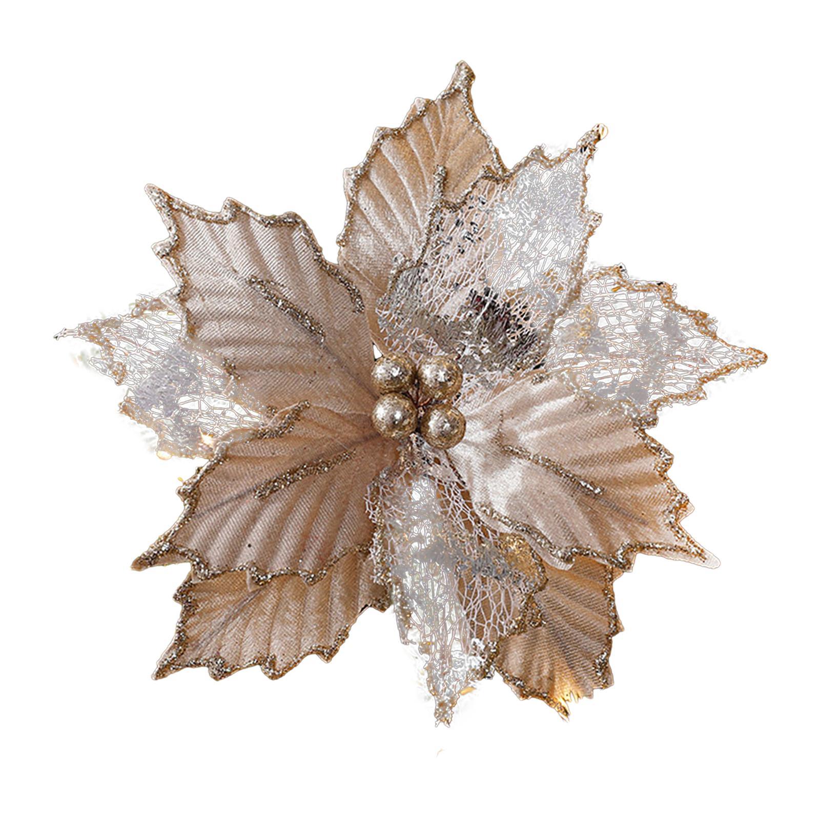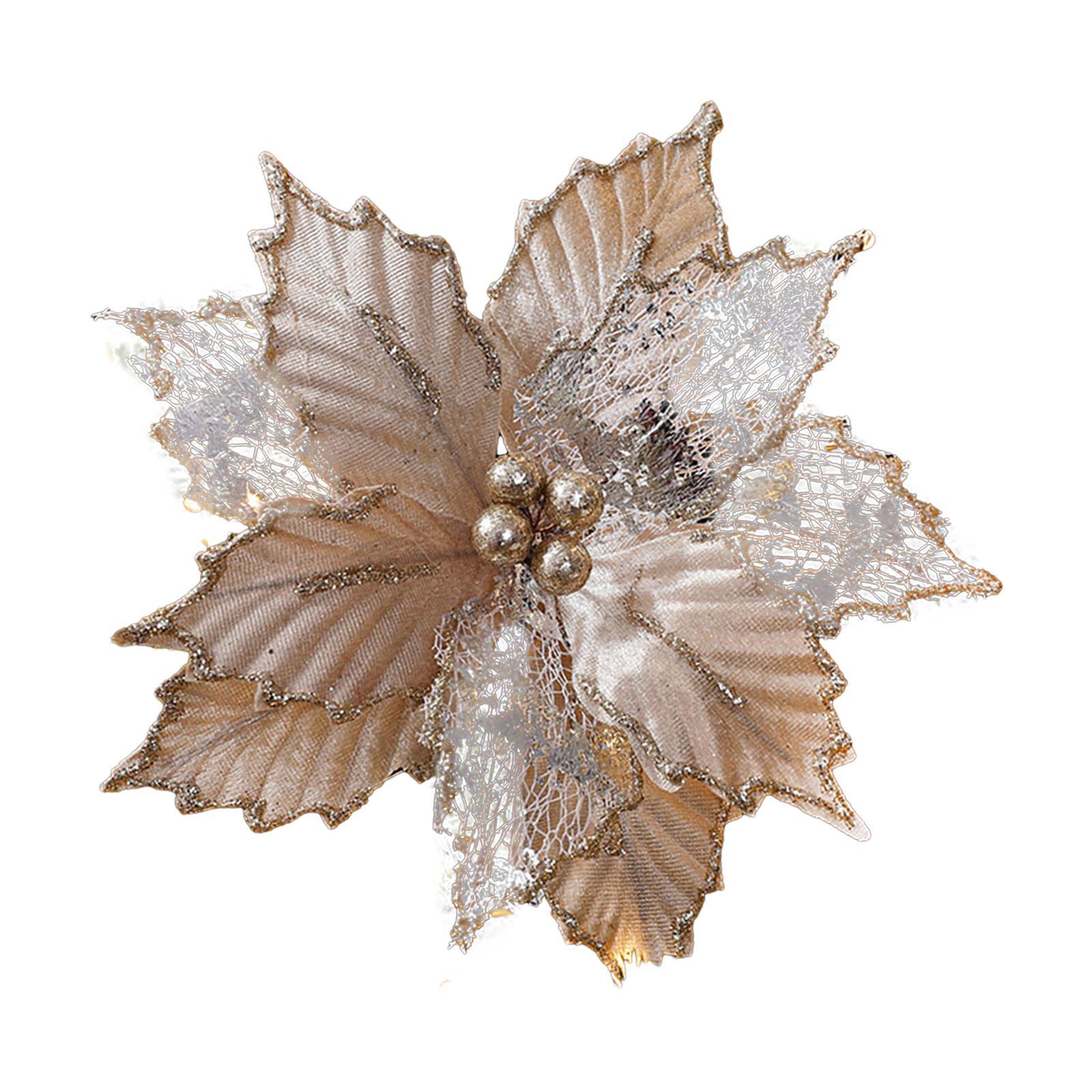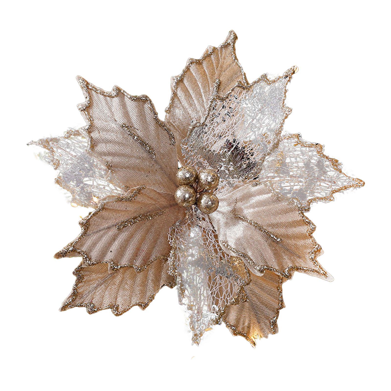 【Glitter Poinsettia Flowers】The Glitter Poinsettia flowers added the perfect touch to christmas tree. Perfect festive decorations for Christmas tree, table, wreath or garland.