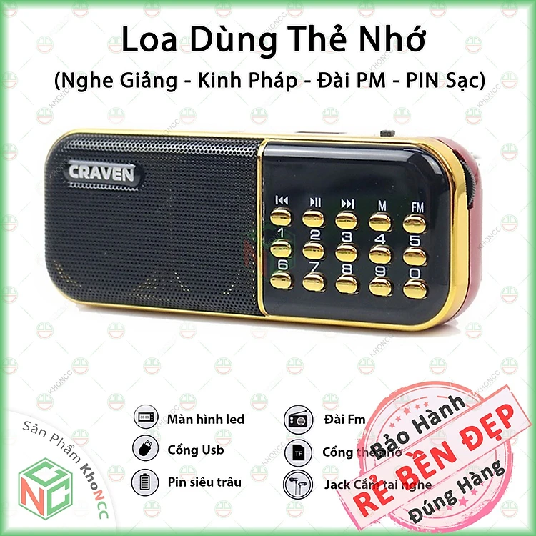 (Chữa Lành) Loa Máy Nghe Pháp KhoNCC Hàng Chính Hãng - Âm Nhạc Trong Tầm Tay - Kinh Phật, Thánh Ca, Bài Giảng, Có Thể Dùng Thẻ Nhớ, USB, Đài FM - KLM-LPCR25A