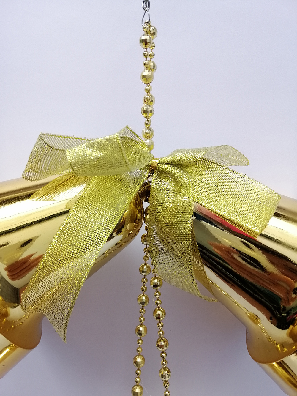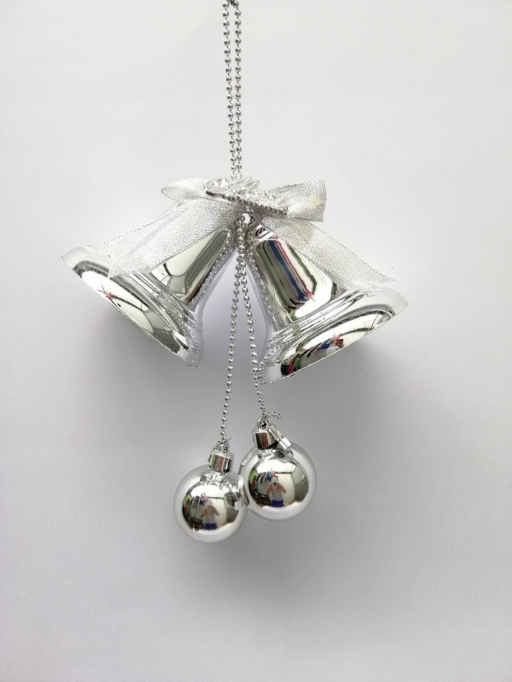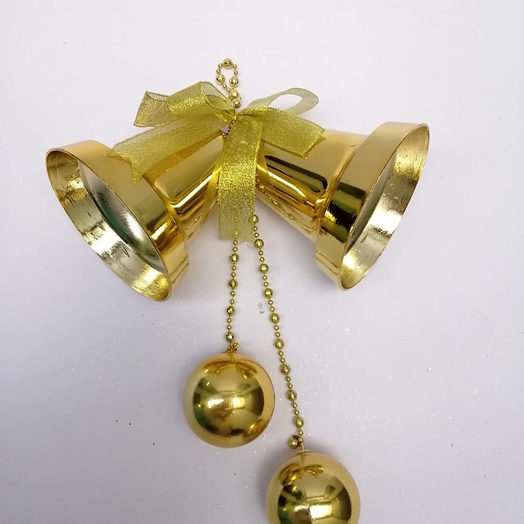 Chùm chuông gồm 2 chuông to đường kính 12cm cao 13cm, 2 quả cầu đường kính 6cm, dây treo quả cầu kiểu hạt xoàng sang trọng. Ý nghĩa chiếc chuông trong lễ giáng sinh : Những tiếng chuông ngân nga trong ngày Giáng sinh luôn khiến mọi người cảm thấy phấn chấn. Tiếng kêu leng keng của quả chuông cũng là thông điệp hối thúc mọi người mau chóng hoàn thành công việc để về sum họp với người thân và gia đình.