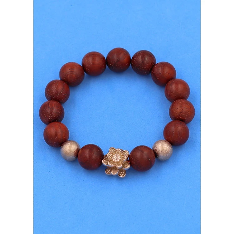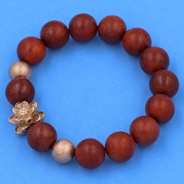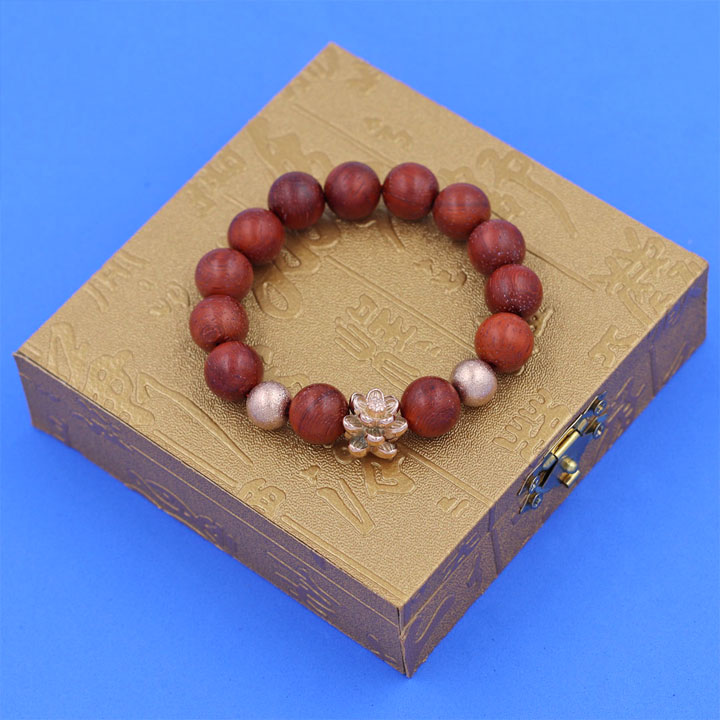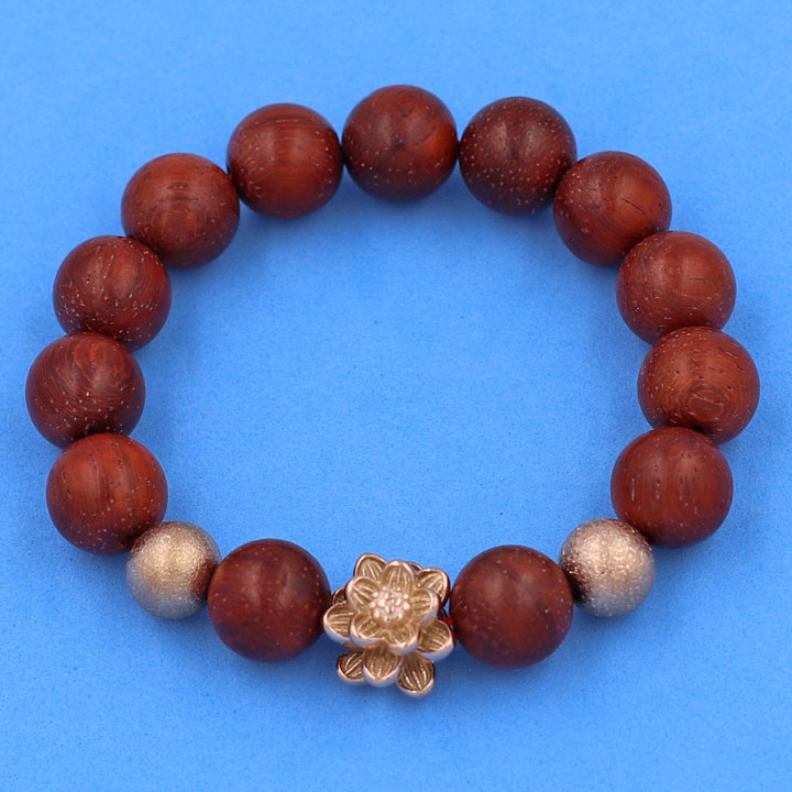 Chuỗi đeo tay Gỗ Đỏ 12 ly mix Bông Sen inox vàng hồng VGOHSHBH12 - Vòng tay hoa sen inox 304