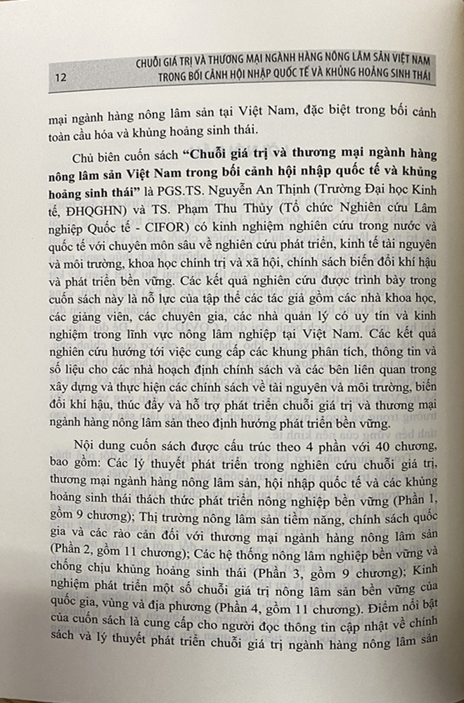 Nội dung cuốn sách được cấu trúc theo 4 phần với 40 chương bao gồm: Các lý thuyết phát triển trong nghiên cứu chuỗi giá trị, thương mại ngành hàng nông lâm sả
