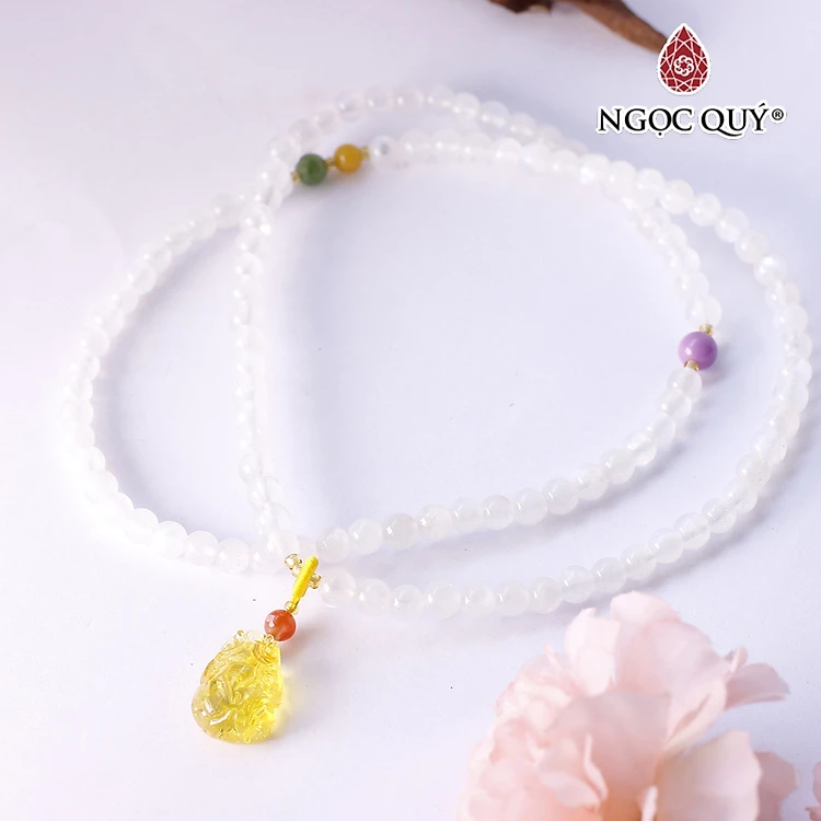 Chuỗi hạt đá mặt trăng hạt 5mm phối tỳ hưu đá hổ phách - Ngọc Quý