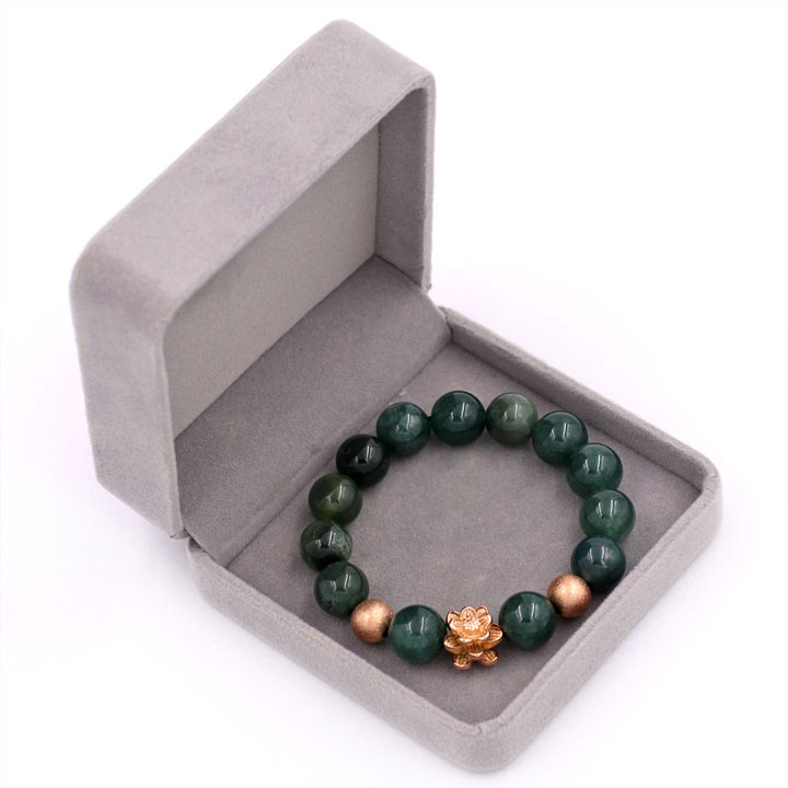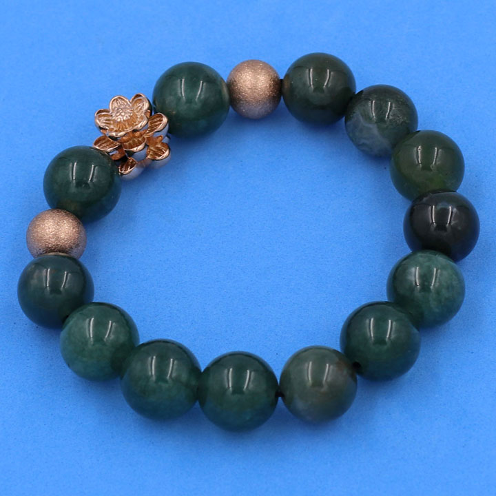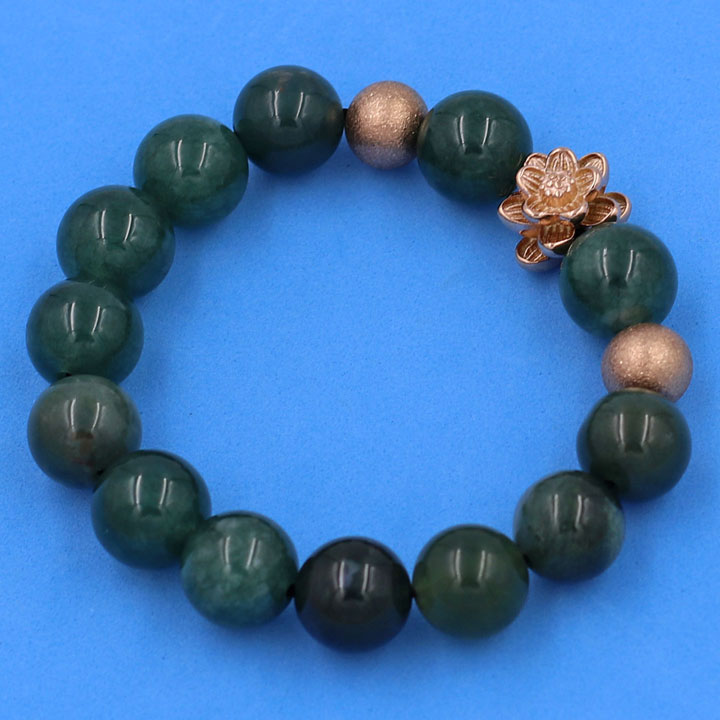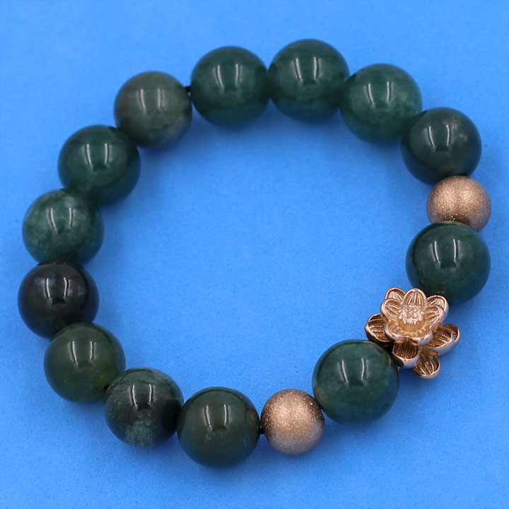 Chuỗi tay Cẩm Thạch Xanh Đậm 12 ly mix hoa sen vàng hồng VCTXDHSHBH12 - Vòng tay hoa sen inox 304, không rỉ sét