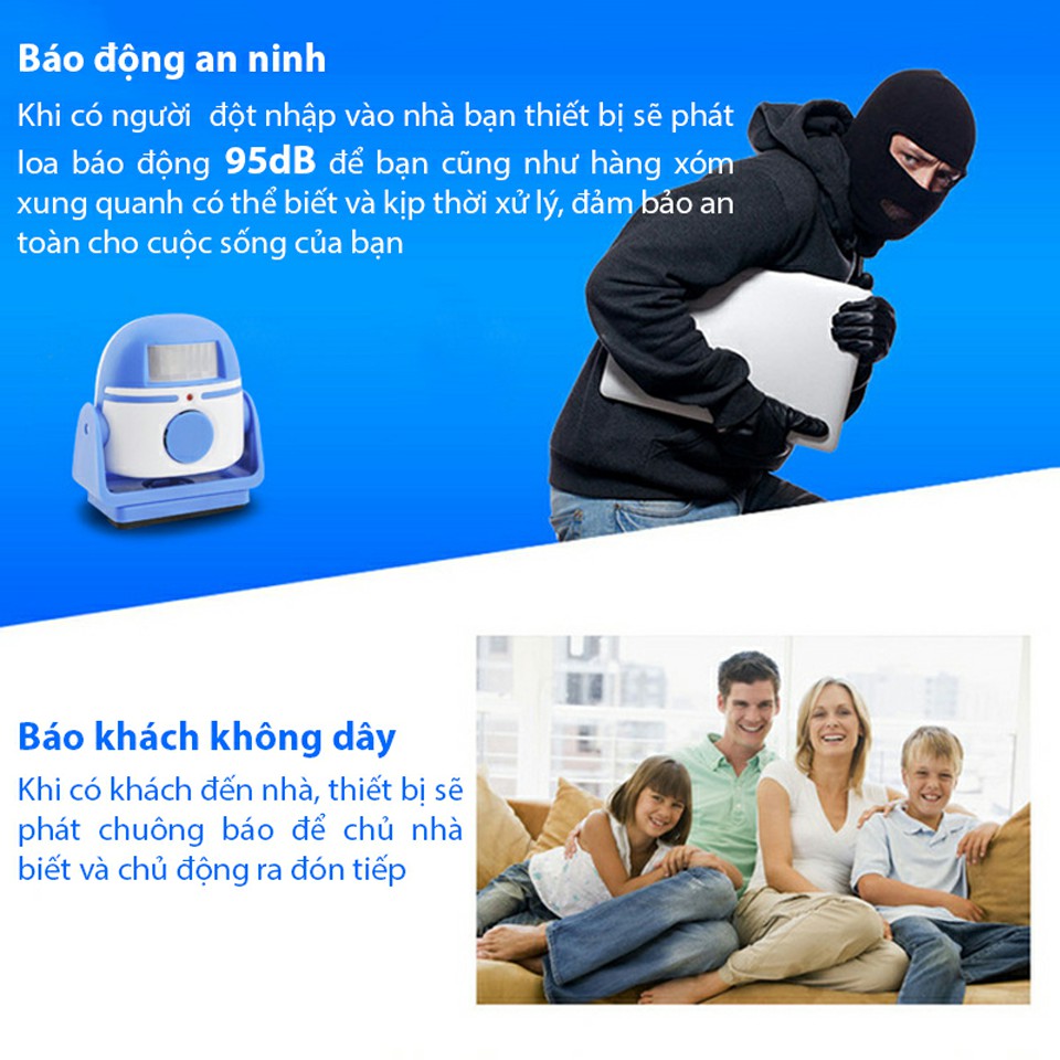 Chuông báo khách không dây tự đổ chuông báo khi có người chuyển động trong vùng quét