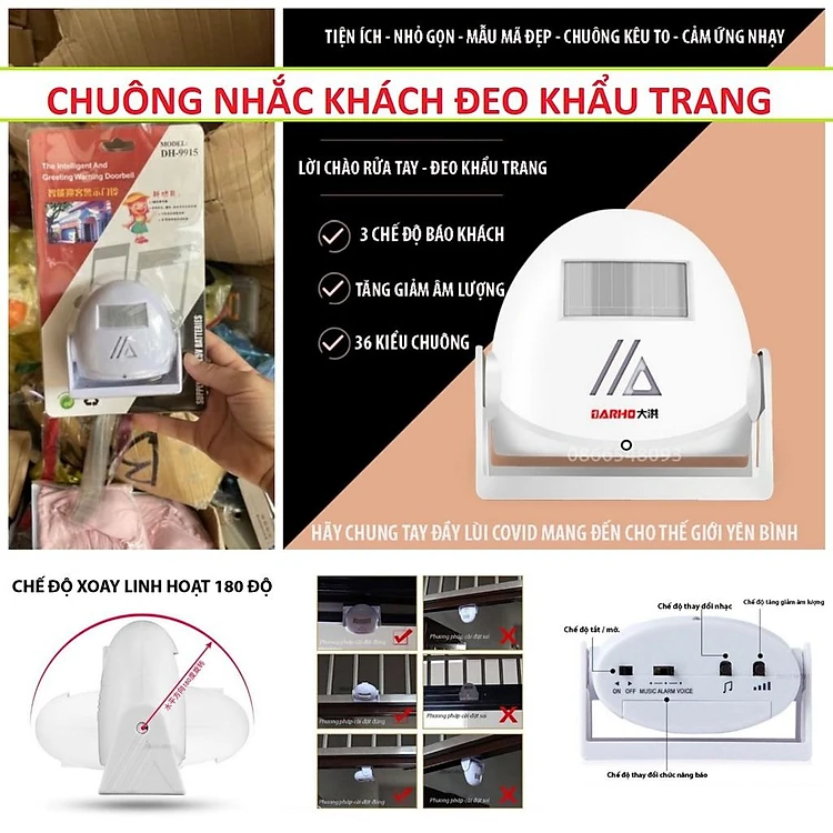 Chuông báo khách nhắc nhở khách đeo khẩu trang và rửa tay sát khuẩn loại tốt