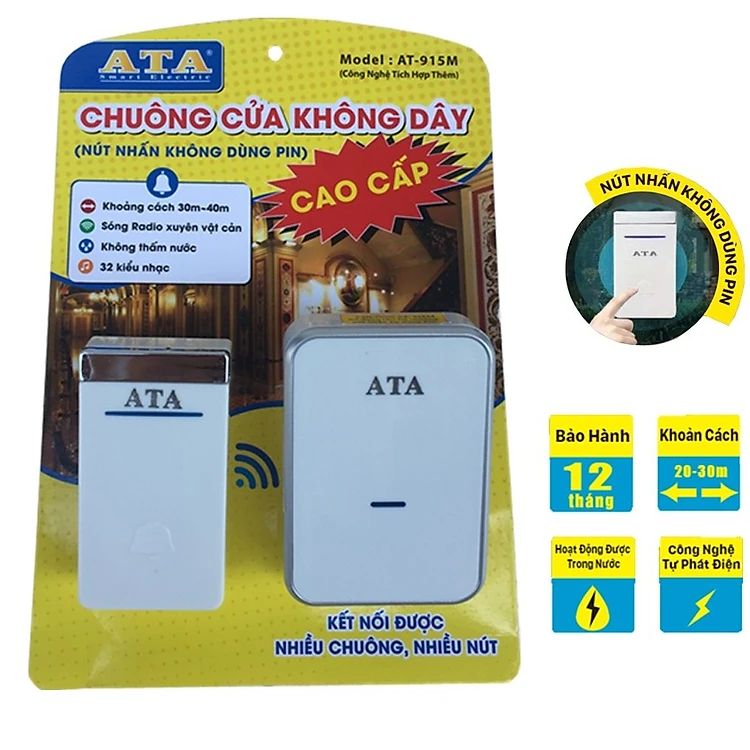 Chuông cửa ATA AT-915M không dây cao cấp - Hàng chính hãng