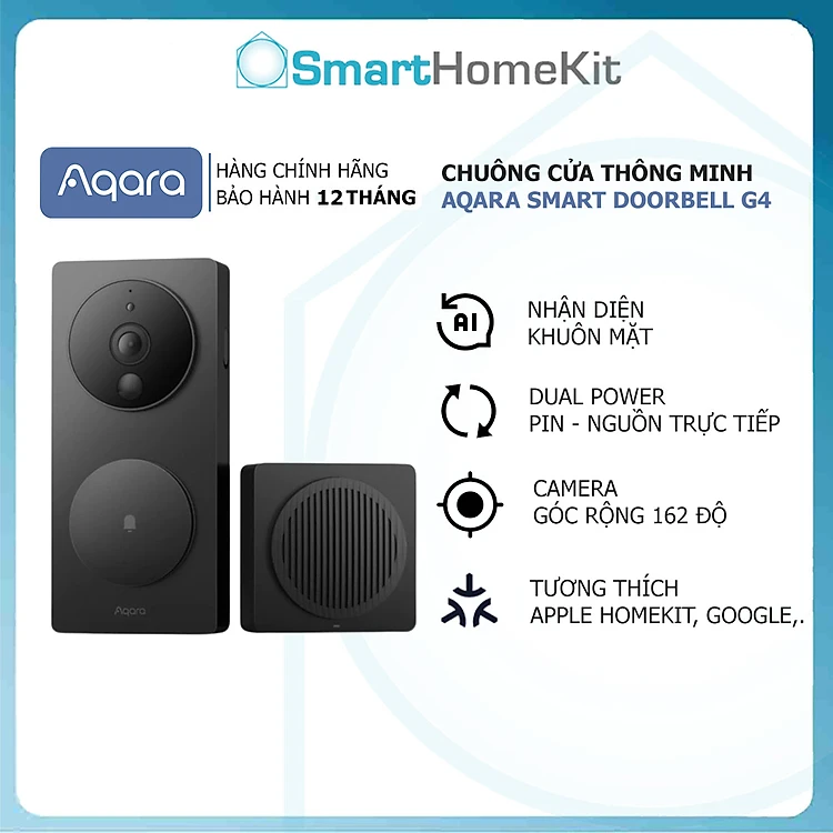 [Quốc Tế] Chuông cửa thông minh Aqara G4 Smart Doorbell 1080p Face ID - Tương Thích HomeKit - Kết nối Wifi - Hàng Chính Hãng