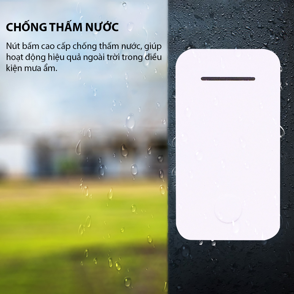 Khả năng chống nước của nút bấm cũng là một điểm mạnh của chuông không dây HBM007, giúp nó có thể hoạt động hiệu quả trong điều kiện thời tiết mưa ẩm tại Việt Nam.