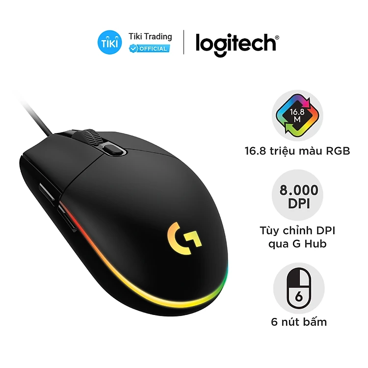 Chuột game có dây Logitech G203 Lightsync - Tùy chỉnh RGB, 6 nút lập trình, nhẹ, 8000 DPI, PC/Mac - Hàng chính hãng