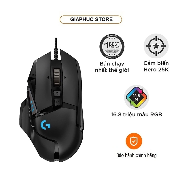 Chuột game hiệu suất cao Logitech G502 Hero - Cảm biến Hero 25k, RGB Lightsync, 11 nút lập trình, điều chỉnh trọng lượng, PC -Hàng Chính Hãng