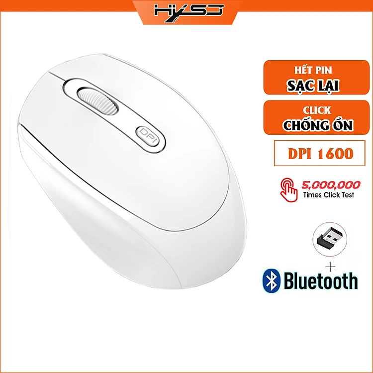 Chuột không dây Bluetooth, chuột máy tính HXSJ M107B chống ồn, DPI 1600, chế độ kép wireless usb 2.4Ghz, bluetooth chuyên dùng cho laptop, máy tính, tivi - Hàng chính hãng