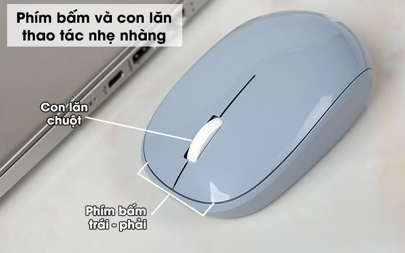 Con lăn chuột trơn tru, mượt mà giúp cuộn trang, điều hướng dễ dàng. Nút bấm nhẹ, độ nảy ổn cho cảm giác bấm thoải mái.