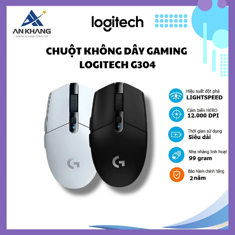 Chuột không dây Gaming Logitech G304 - Cảm biến Hero, 12k DPI, nhẹ, 6 nút lập trình, on-board memory, pin 250h -Hàng Chính Hãng