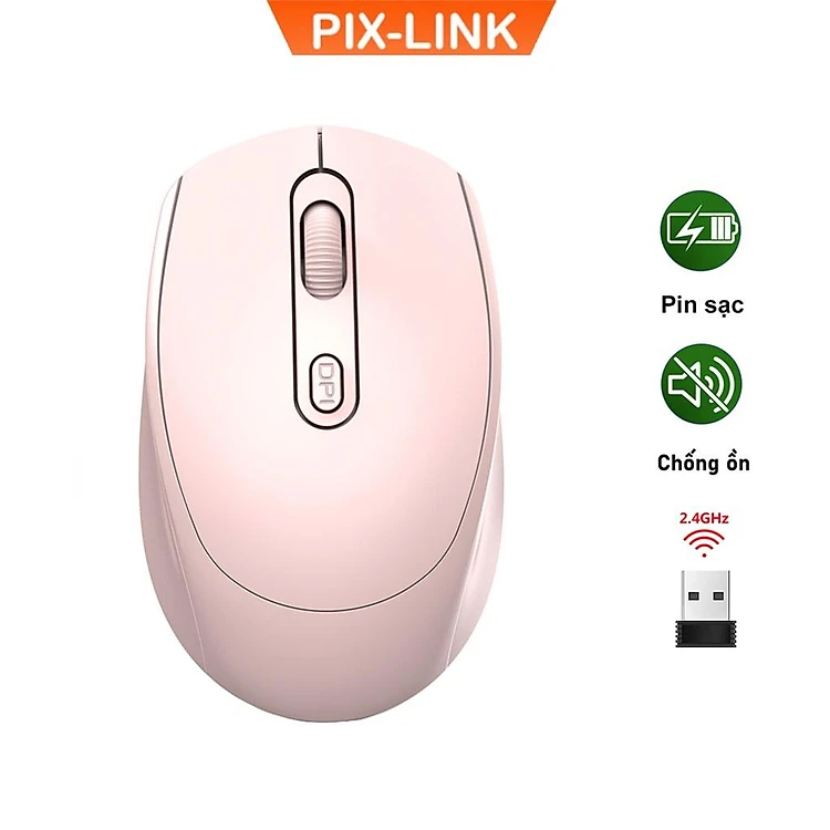 Chuột Không Dây PIX-LINK P100 Wireless 2.4Ghz Sạc Pin, Chống Ồn, DPI1600 Dùng Cho Máy Tính, Laptop, Tivi-Hàng Chính Hãng