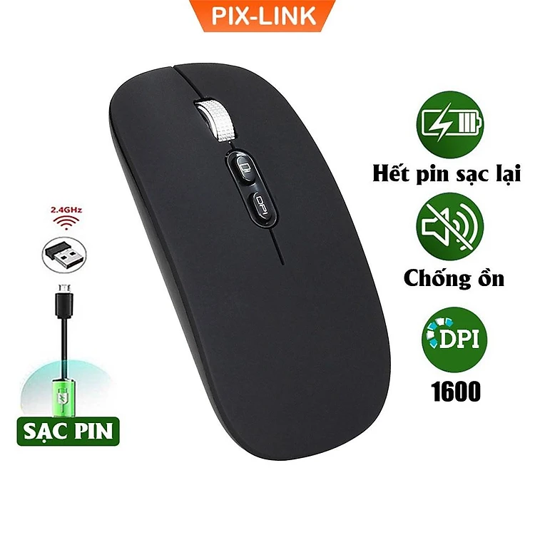 Chuột Không Dây PIX-LINK P103A Pin Sạc USB 2.4GHz DPI 1600, Không Tiếng Ồn Sử Dụng Cho PC, Laptop, Tivi Hàng Chính Hãng