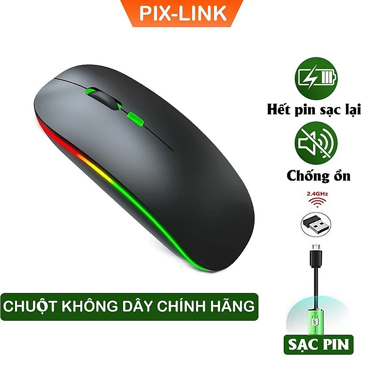 Chuột Không Dây PIX-LINK P402 Sạc Pin, Không Tiếng Click, Led Đổi Màu, DPI1600 - Hàng Chính Hãng