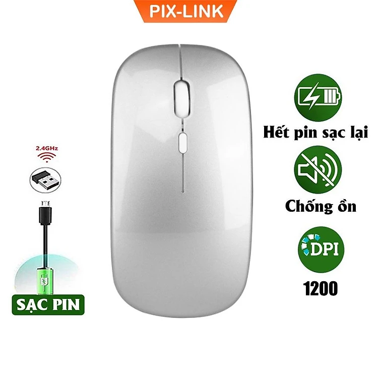 Chuột Không Dây Sạc Pin 2.4GHz PIX-LINK P1 Siêu Mỏng Không Gây Tiếng Ồn Sạc 1 Lần Dùng 1 Tuần Cho Laptop Macbook PC Tivi - Hàng Chính Hãng