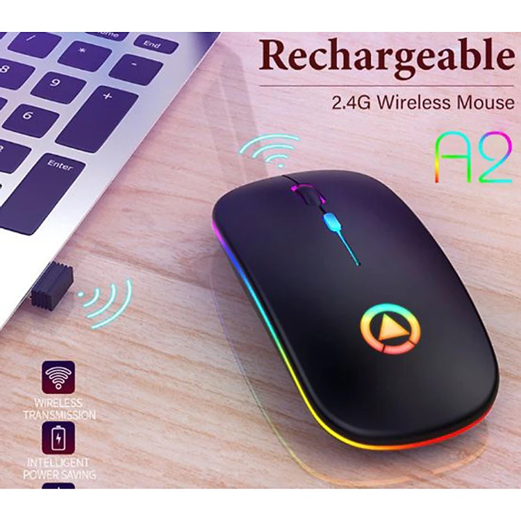Chuột Không Dây Siêu Mỏng Có Thể Sạc Điện Chơi Game Chuyên Nghiệp Đèn LED 7 Màu A2 - Hàng Chính Hãng