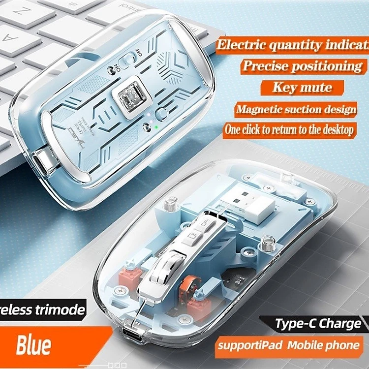 Chuột Không Dây trong suốt M133 Bluetooth 5.0 / 3.0 / USB 2.4G - chống ồn - Pin sạc TypeC - kết nối đa thiết bị hàng nhập khẩu