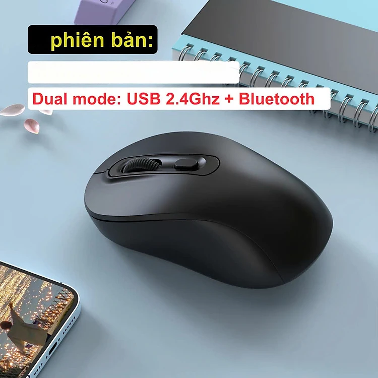 Chuột không dây wireless USB 2.4Ghz sạc pin Kết Nối Bluetooth, chồng ồn, DIP1600 chuyên dùng cho máy tính, laptop, tivi MÀU ĐEN - Hàng Nhập Khẩu