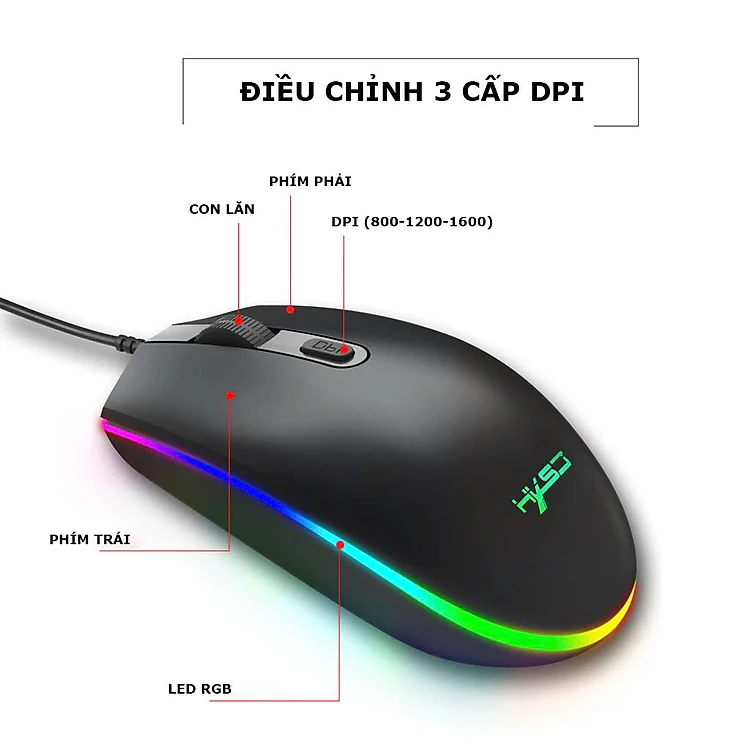 Chuột led cho máy tính Chuột có dây giá Tốt, đèn RGB 1600 DPI Đen, hoạ tiết bắt mắt Dây Dài 1m4 Thiết Kế Ôm Tay Thuận Cả 2 Tay Văn Phòng USB Cho Máy Tính Laptop Tivi - Hàng Nhập Khẩu