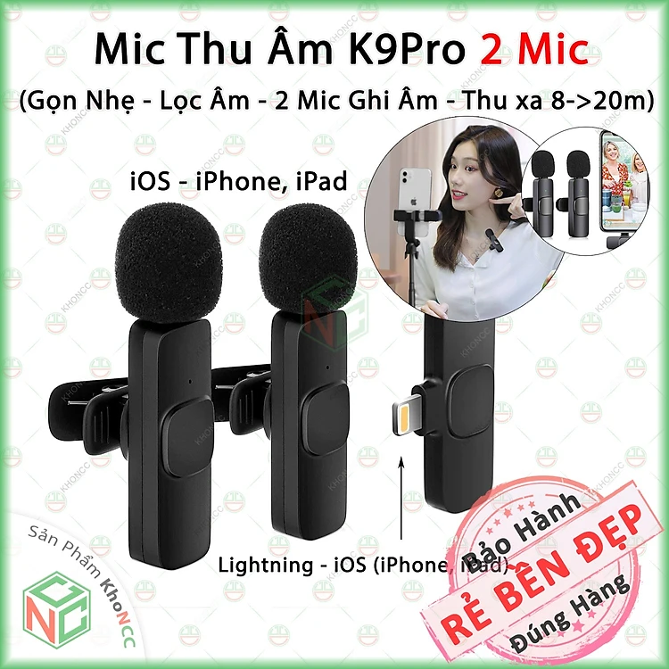 (Chuyên Nghiệp) 02 Micro Thu Âm Gắn Cổ Áo KhoNCC Hàng Chính Hãng Giúp Âm Thanh Sắc Nét - Lọc Nhiễu - Phục Vụ Bán Hàng - Đào Tạo LiveStream - Hát Karaoke Trực Tuyến - KLM-2MicK9Pro