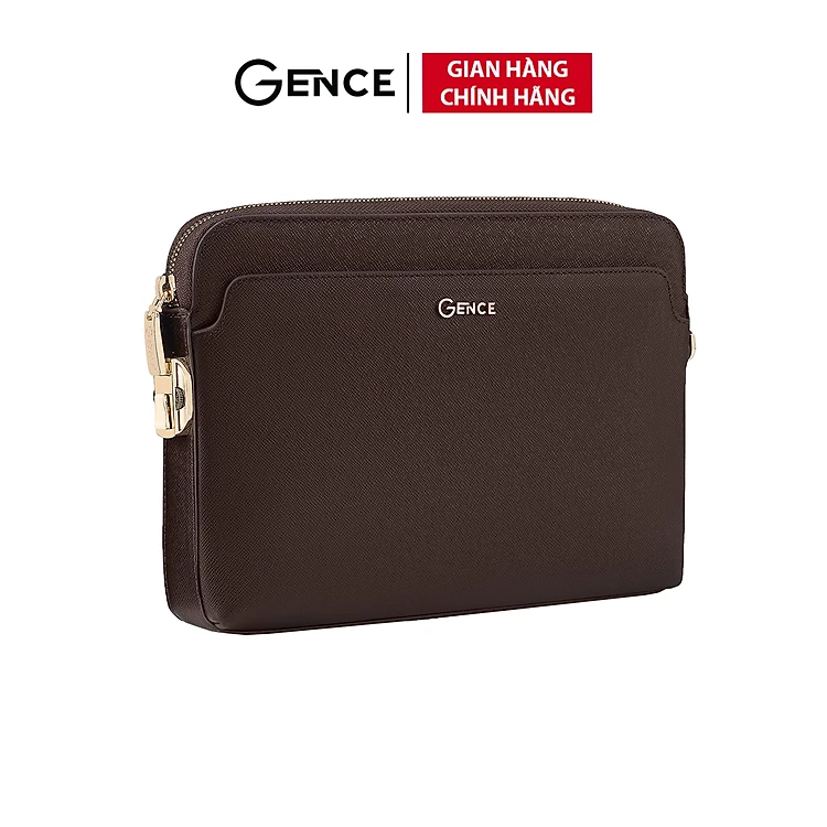 Clutch Da Ví Cầm Tay Kẹp Nách GENCE CK24 Da Bò Khóa Số Cao Cấp Màu Nâu