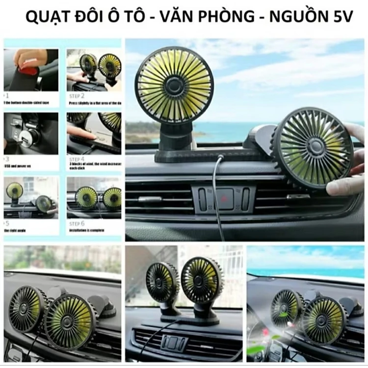 QUẠT ĐÔI XOAY 360 TRÊN XE HƠI ÔTÔ 3 CẤP ĐỘ GIÓ SIÊU MÁT LẠNH