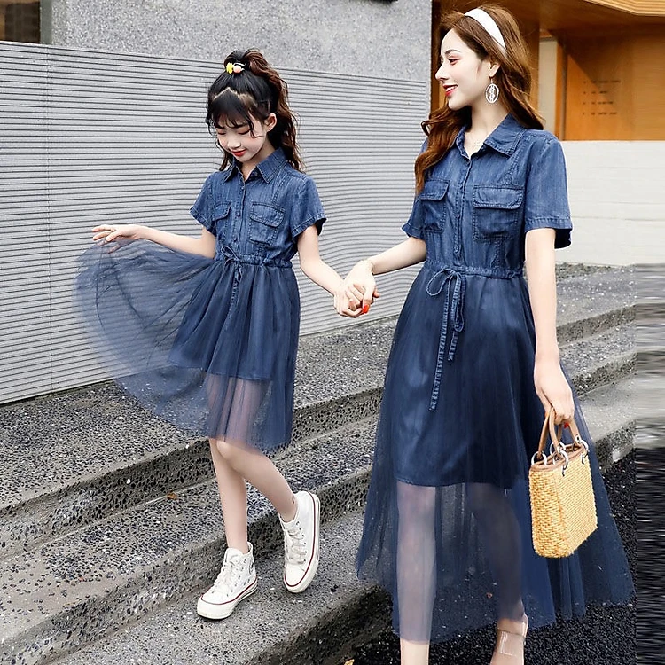 [Có sẵn] Áo đôi mẹ và con gái làm từ vải denim kết hợp vynylon