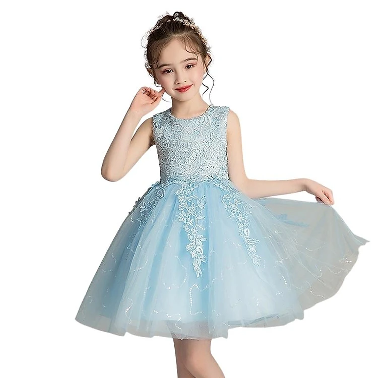 [Có sẵn] [Siêu sale] Váy đầm bé gái dễ thương, váy lưới bồng bềnh dự tiệc cho bé từ 6-12 tuổi màu xanh lam