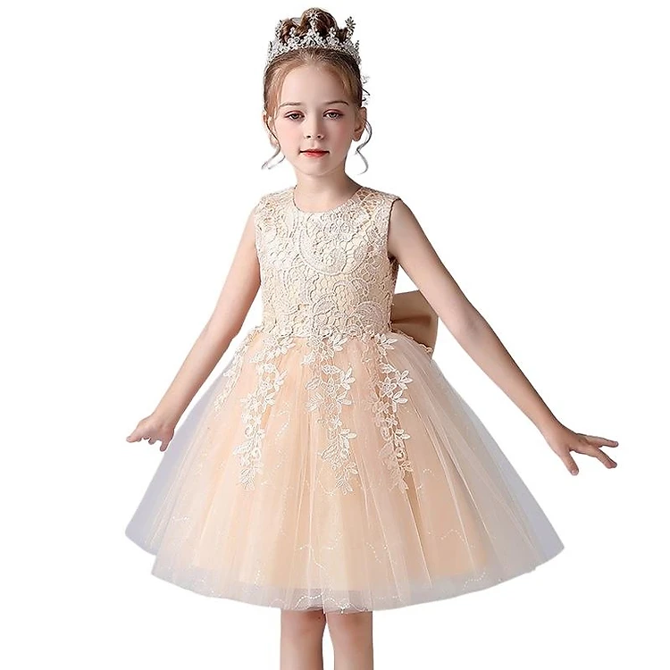 [Có sẵn] Váy đầm bé gái dễ thương, váy lưới bồng bềnh dự tiệc cho bé từ 6-12 tuổi màu vàng sâm banh