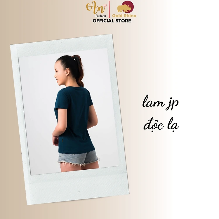 Áo Phông Nữ Cổ Tròn Màu LAM JP Chất Liệu 100% Cotton Cao Cấp, Kháng Khuẩn Ag+, Khử Mùi Cả Ngày - Gold Rhino