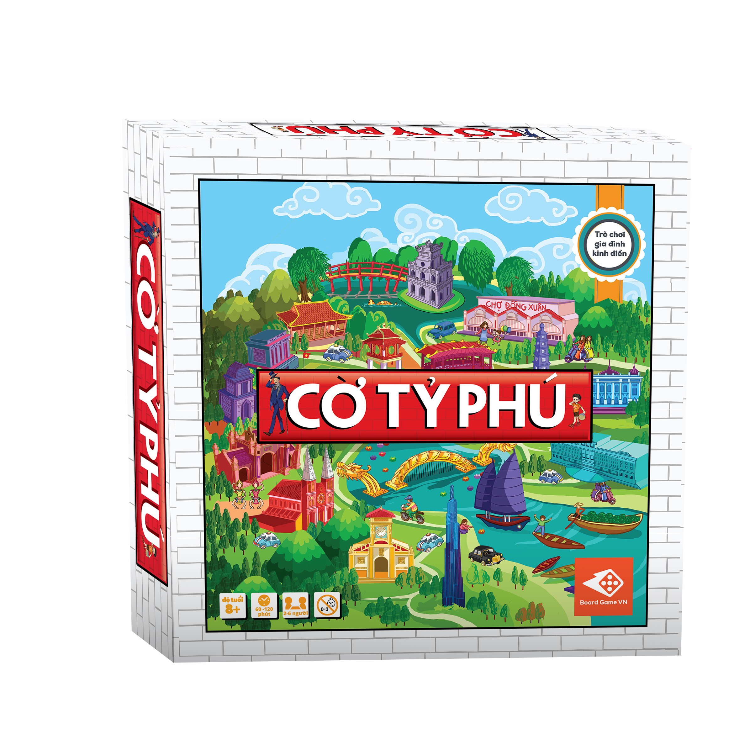 Phiên bản Cờ Tỷ Phú Việt Nam mới nhất này mang đậm nét văn hóa của Việt Nam, khi đưa các địa danh thân yêu của chúng ta vào mỗi cạnh của bàn cờ. Người chơi như du lịch một vòng của đất nước hình chữ S xinh đẹp để chiêm ngưỡng thắng cảnh. Những Phố Cổ, Chợ Đồng Xuân, Tháp Rùa, Vịnh Hạ Long, Sơn Đòong, Hội An, Chợ Bến Thành, đều được thể hiện sống động trên từng ô vuông và các lá bài rõ nét.