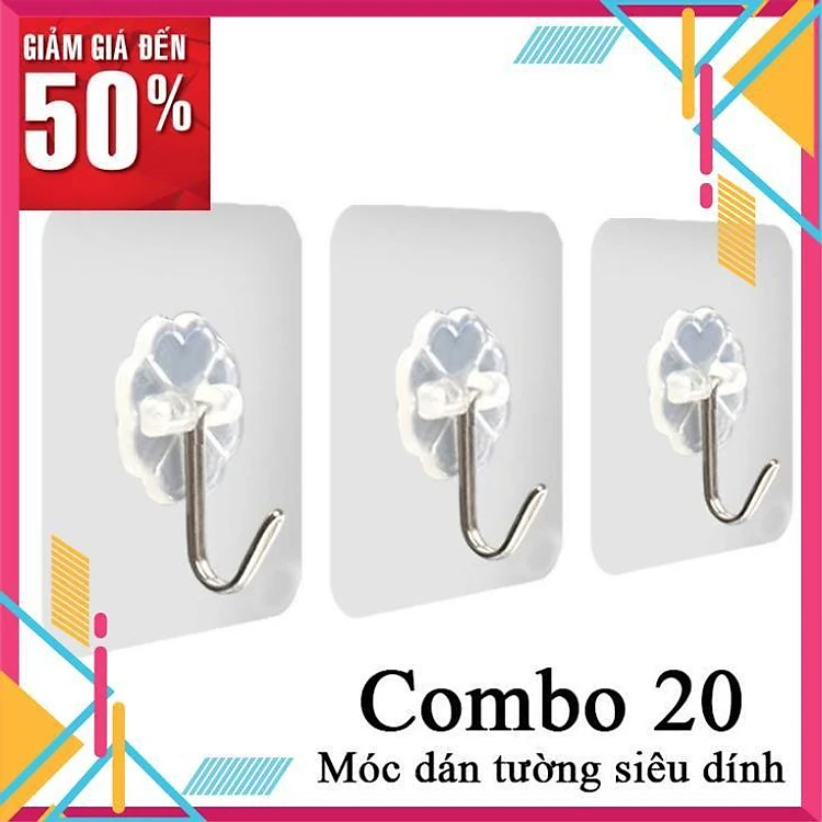 [CÓ VIDEO] Móc dán tường siêu dính siêu chắc treo đồ chịu lực 10kg mini trong suốt [ bộ 20 miếng ]
