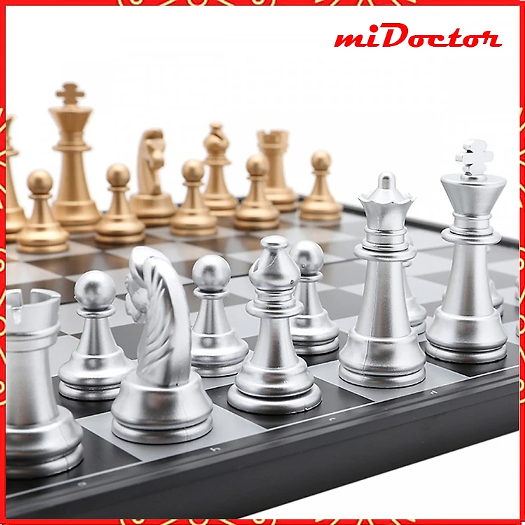 - Bàn cờ vua nam châm làm bằng nhựa cứng HIPS có kim loại và có thể gấp gọn, với khóa cài chắc chắn đảm bảo không làm rơi rớt các quân cờ bên trong.