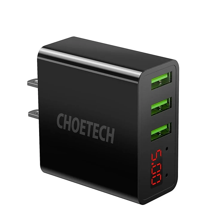Cóc củ sạc nhanh 3 cổng USB hiệu CHOETECH C0026US cho điện thoại / máy tính bảng Samsung iPhone Huawei Oppo Xiaomi (sạc nhanh 2.4A / Port, 3 Port USB, Max 3A, trang bị LED hiển thị) - hàng chính hãng