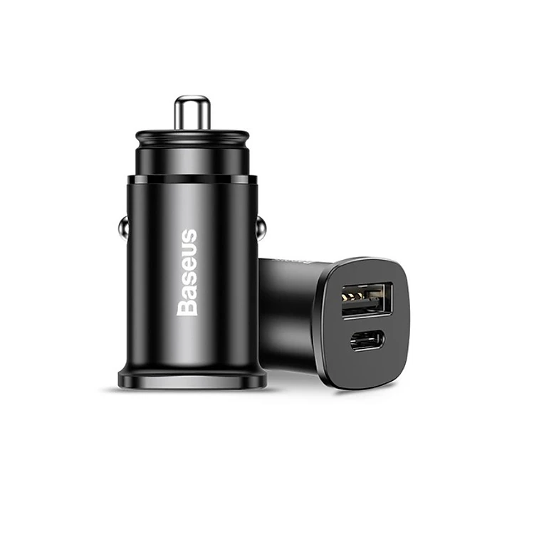 Cóc củ sạc nhanh cho ôtô xe hơi Baseus 2 cổng USB DP và Type-C trang bị đèn LED - Hàng chính hãng