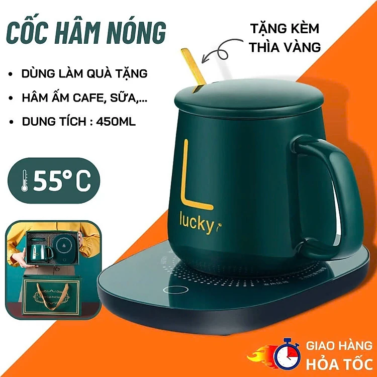 Cốc Hâm Nóng Đa Năng – Bộ Ly Sứ Kèm Đế Điện Giữ Nhiệt Trà, Cafe, Sữa | Kèm Thìa & Hộp Sang Trọng