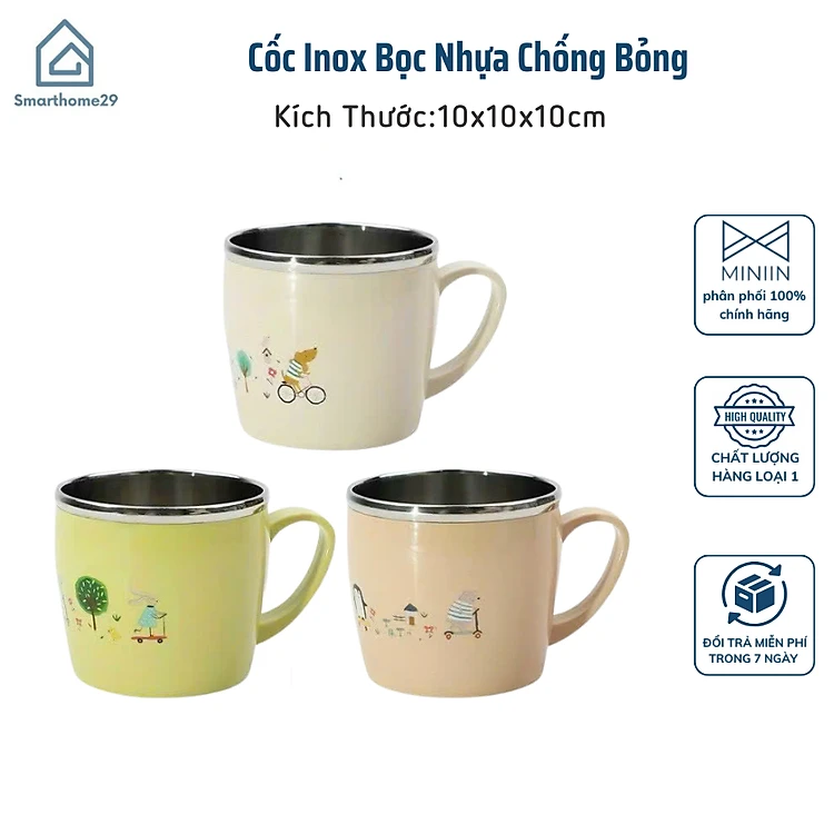 Cốc Inox Bọc Nhựa Chống Bỏng – Giữ Nhiệt Cho Bé Uống Sữa, Có Quai Cầm Tiện Lợi - HÀNG CHÍNH HÃNG MINIIN