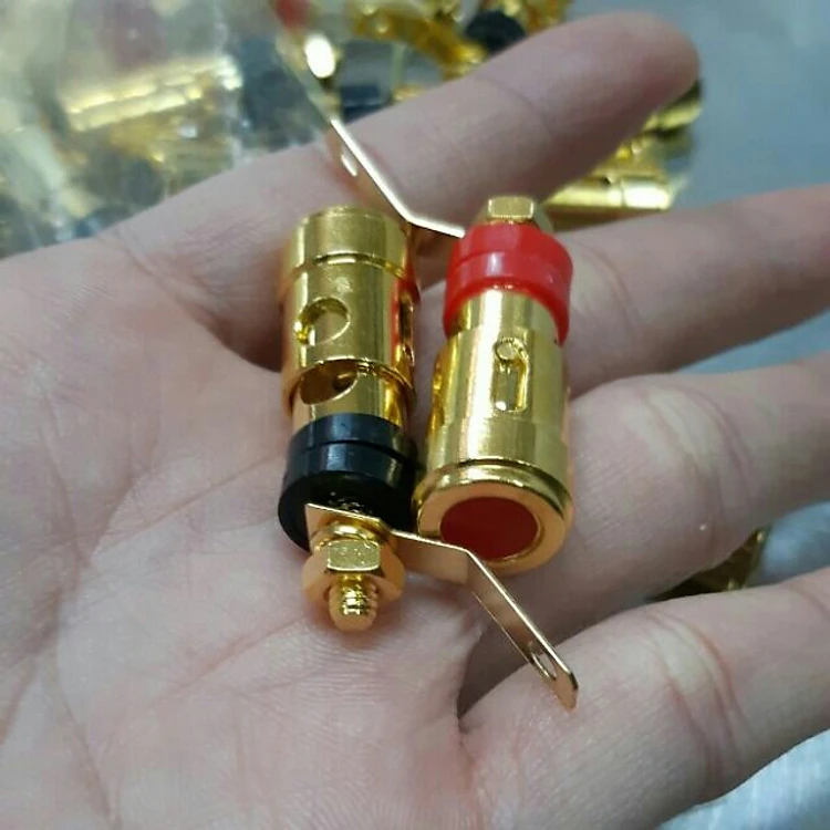 Cọc loa lớn nhấn màu vàng loại tốt , sử dụng cho các thiết bị âm thanh sân khấu và gia đình , dùng để thay thế cho loa hoặc thùng loa bị hư cọc loa do sử dụng theo thời gian , hoặc cho các cơ sở sản xuất , láp ráp loa mới .