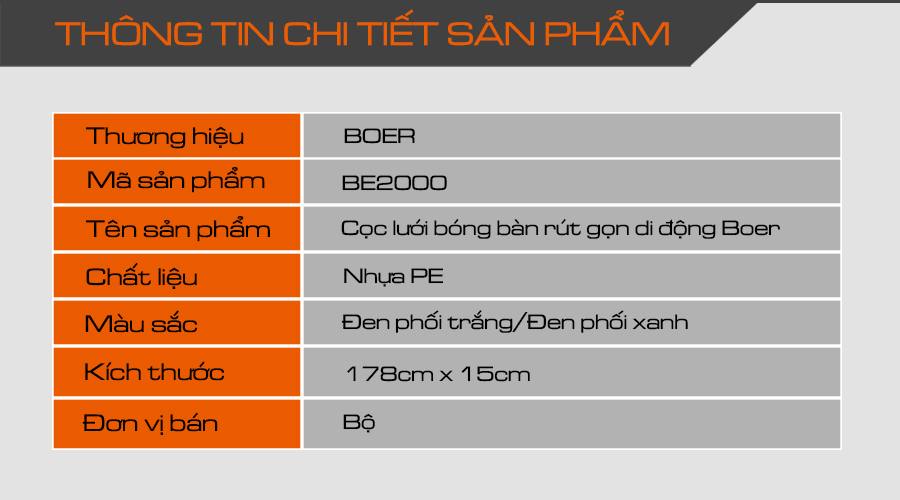CỌC LƯỚI BÓNG BÀN RÚT GỌN DI ĐỘNG BOER BE2000 (2 MÉT)