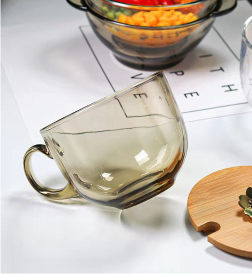 480ml Amber Glass Cup with Heat Resistant Handle , Handy Breakfast Cereal Cup