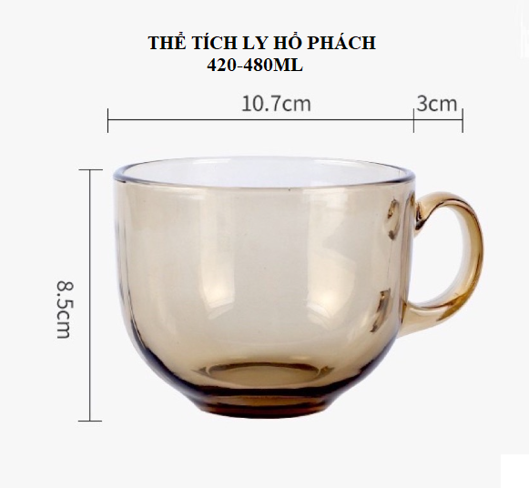 Cốc Ly thủy tinh màu hổ phách 480ml có quai chịu nhiệt cao, Cốc cầm tay đựng đồ ngũ cốc ăn sáng tiện dụng